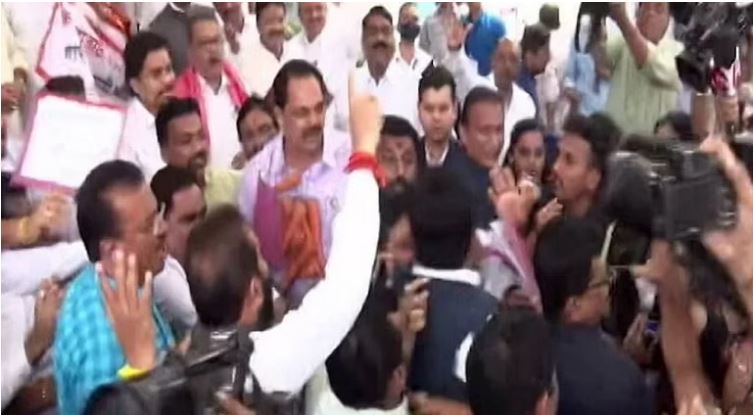 पावसाळी अधिवेशनाच्या पाचव्या दिवशी विधिमंडळ परिसरात पायऱ्यांवर सत्ताधारी आणि विरोधी गटाचे आमदारांमध्ये चांगलाच राडा झाला. यावेळी शिंदे गटाचे आमदार महेश शिंदे आणि राष्ट्रवादी काँग्रेसचे आमदार अमोल मिटकरी (Mahesh Shinde...