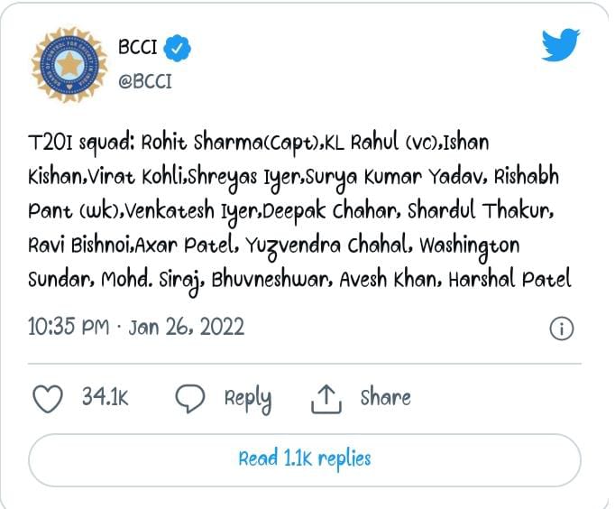 ६ फेब्रुवारीपासून भारत आणि वेस्ट इंडिज यांच्यात तीन एकदिवसीय आणि तीन टी-२० सामन्यांची मालिका खेळली जाणार आहे. वेस्ट इंडिजविरुद्धच्या टी-२० आणि एकदिवसीय मालिकेसाठी टीम इंडियाची घोषणा करण्यात आली आहे....