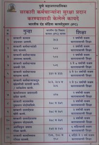 अनेक शासकीय कार्यालयात सरकारी कर्मचाऱ्यांना दमदाटी करणे, अजामीन पात्र गुन्हा, ३ वर्षांचा कारावास व दंड अशा प्रकारचा IPC ची कलमे दर्शविलेला फलक दर्शनी भागात लावलेला असतो, तो वाचल्यानंतर कुठल्याही सरकारी कर्मचाऱ्यांशी संवाद साधायला सामान्य नागरिकाला भिती वाटते. या बाबत ॲड. विशाल सातव यांनी पुणे महानगर पालिकेकडून (PMC Pune) हे फलक लावण्यासंदर्भात शासनाचे काही आदेश किंवा परिपत्रक आहेत का ? अशी माहिती मागवली. तरी या संदर्भात शासनाचे कुठलेही आदेश नसल्याचे समोर आले आहे.