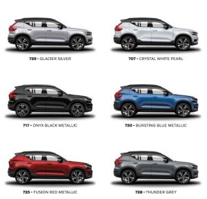 नवीन Volvo XC40 फेसलिफ्ट कंपनीने एकूण पाच कलरमध्ये लॉन्च केली आहे. ज्यामध्ये क्रिस्टल व्हाईट, फजॉर्ड ब्लू, फ्यूजन रेड, ओनिक्स ब्लॅक आणि सेज ग्रीन या रंगांचा समावेश आहे.